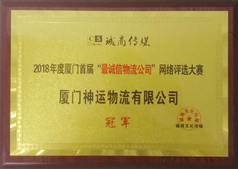 熱烈祝賀神運物流榮獲“2018年度廈門首屆最誠信物流公司網評大賽冠軍”